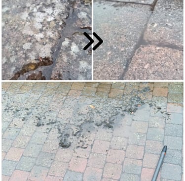There's no rushing this kind of work, especially when you're covering a larger area. Blast through it too quickly and you'll either damage the stones or leave patches that don't match. You have to be methodical, working through each joint properly. Once you step back and see the difference though—from grey and grimy to clean stone again—it's worth every minute spent on site.