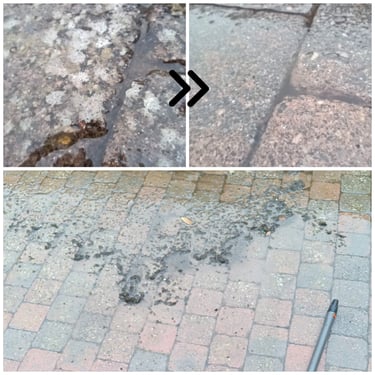 Those paving stones had seen better days. Moss was creeping through the joints, silt had settled in thick, and the lichen stains were stubborn—the kind that won't budge with a quick spray. You can tell straightaway when a surface has been neglected for a season or two.