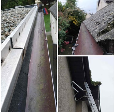 The property had gutters filled with leaves, moss, and debris—typical for our Northern Ireland weather. But there was more to it. Overgrown plants in a corner had pushed against the downpipe, causing it to loosen from its fixings. Left unchecked, this could have led to water overflow and potential damage to walls or foundations.