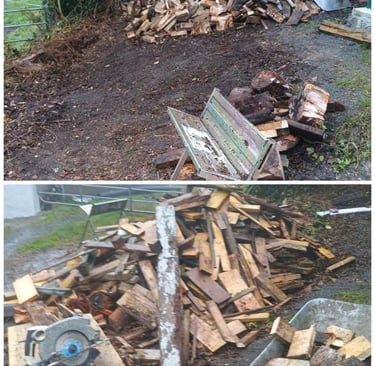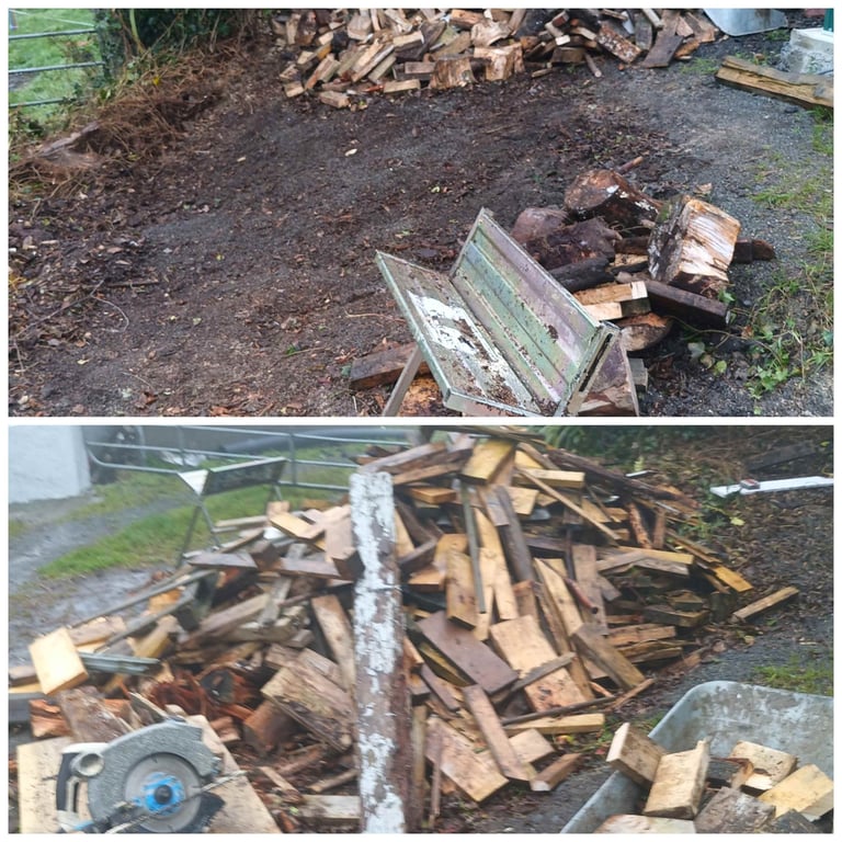 The project involved processing timber into manageable firewood pieces, suitable for stoves and open fires. Working through stacked logs and clearing the area, the wood was properly split and organized for efficient drying and storage.