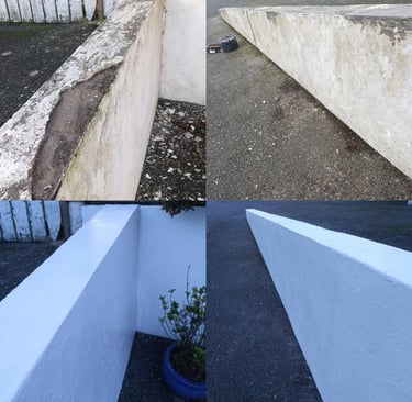 External walls take a battering from Ireland's weather. Loose concrete, flaking paint, and weathered surfaces don't just look tired—they leave your property vulnerable to damp and further damage.